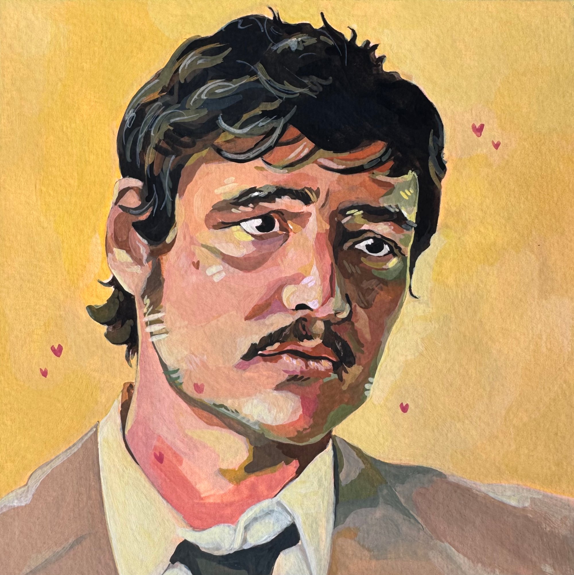 5"x5" or 8"x8" textured matte giclee prints of buttery yellow Javier Peña. Originally painted by me with gouache.